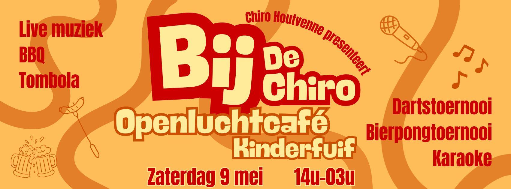 12April Bij de Chiro algemeen Kom op 9 mei zeker langs "Bij de Chiro", een openluchtcafé met live muziek en allerlei toffe activiteiten!!! Een dartstoernooiEen bierpo...